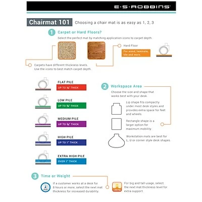 ES ROBBINS Sit or Stand Mat combines anti-fatigue support with hard floor protection. Two mats in one for active workspaces. Simply fold for a supportive foam cushion, then unfold for a full-size chair mat.