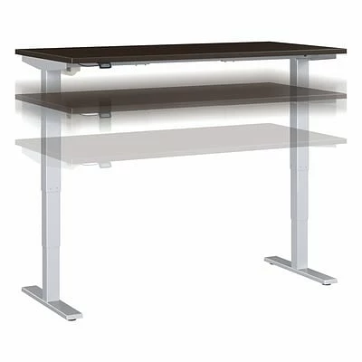 Bush Business Furniture Move 40 height-adjustable desk is a perfect way to build an ergonomic workspace without the high-end price tag. Give your body and mind a break from sedentary work and enjoy a healthier, more productive office with the push of a button. Three-stage units lift the 59.45″ x 29.37″ desktop anywhere from 28.17″ to 48.24″ at a speed of 1.25″ per second so you can change positions without missing a beat. The adjustable desk also features an anti-collision sensor that stops movement up or down if an object is detected. Available in your choice of five finishes, the durable thermally fused laminate work surface resists scratches and stains while a welded 16-gauge steel base allows the desktop to support up to 176 lbs. Sit-stand desk meets or exceeds ANSI/BIFMA standards for safety and performance and is backed by a 5-year manufacturer limited warranty.
