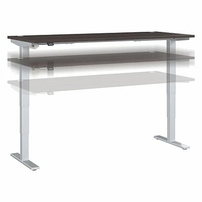 This Bush Business Furniture Move 40 28″-48″ adjustable desk is an affordable way to build a healthy and productive ergonomic workspace without a high-end price tag. Give your body and mind a break from sedentary work and enjoy a healthier, more productive office with the push of a button. Three-stage units lift the 71″W x 29″D desktop anywhere from 28″ to 48″ from the floor at a speed of 1.25″ per second so you can change positions without missing a beat. The adjustable desk also features an anti-collision sensor that stops movement up or down if an object is detected. The durable thermally fused laminate work surface resists scratches and stains while a welded 16-gauge steel base allows the desktop to support up to 176 lbs. This sit-stand desk is tested to meet ANSI/BIFMA standards for safety and performance and is backed by a 5-year manufacturer limited warranty.