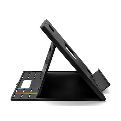 Combine the ergonomic benefits of raising your screen height with the technological benefits of increased air circulation for your laptop with the Kensington SmartFit Easy Riser Go adjustable ergonomic laptop riser and cooling stand. The sleek two-in-one design is height- and angle-adjustable to improve posture, promote proper eye alignment, and support neck and shoulder comfort while keeping the laptop’s internal components cool. Anti-slip foot pads prevent the stand from sliding forward, padded inserts provide a secure fit for your device, and the slim foldable design is made for travel. Use with an external keyboard and mouse (sold separately).