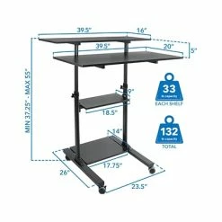 This Mount-It! presentation lectern is the perfect solution if you’re looking for a multiuse stand that works as a mobile laptop cart, podium, and lectern. This portable, rolling stand-up desk can be easily raised from 40.5″ to 48.75″ with a quick turn of the twist knobs. The 48.75″ maximum height of this stand is taller than most podiums in the market, which is a great feature that accommodates more user heights. The durable casters allow you to roll the stand to a new location and simply step to lock each of the four wheels for a stationary position.