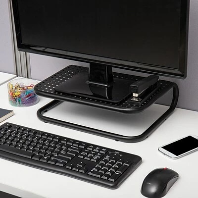 Why strain your eyes and neck when doing work? Keep your good posture while keeping your monitor at the correct eye level height without straining yourself. It has a modern, sleek black look to it to go with any office!