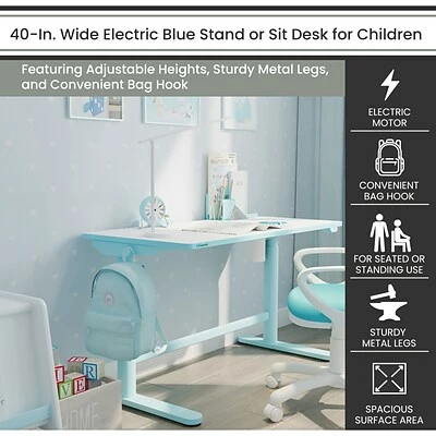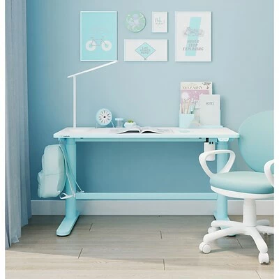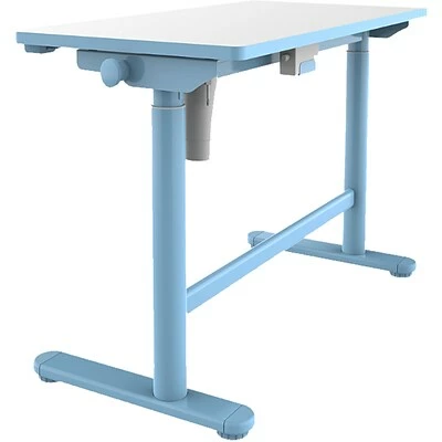 Itโs time to take a stand against restless legs with Hanoverโs sit or stand desk designed practically for children. This colorful standing desk is the perfect solution for kids who need to move while learning. The effortless height adjustment and spacious desktop provide a safe area for your child to learn and craft while still having the ability to be active. A convenient bag hook is located on the column, so the desk is able to stay organized. Prioritize your childโs learning while accommodating their need to move with Hanoverโs standing desk series.