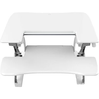 Easy lift standing desk with keyboard tray for tabletops and office desks