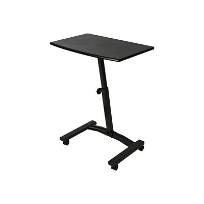 Work the way you want with this Seville Classics mobile laptop/computer desk cart. Designed with mobility in mind, the cart features four smooth-gliding, 1.5″ casters so you can take your work with you; two locks allow the desk to stay where you leave it. Easily move your laptop or writing workstation to any space in your home, dorm, or office. Manually adjust the desk’s height and keep it there with the locking knob. The desk features a steel frame for stability, durability, and strength. The base is a low-profile design intended for use with or without casters, so it can be moved close to furniture like couches and recliners.