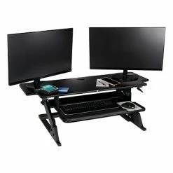 Desk frame is made with durable steel in black color, while low-profile, rectangular metal base allows for easy use near other furniture