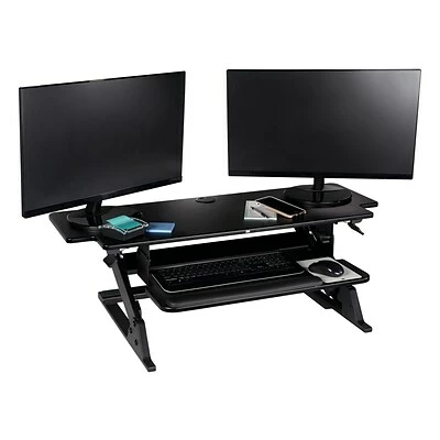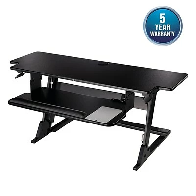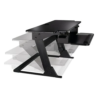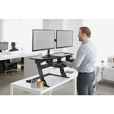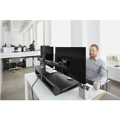 The 3M Precision Standing Desk XL Plus SD70B has continuous height adjustment settings and a tiltable keyboard platform to achieve your most comfortable standing work position. The 42″ wide work surface can accommodate two 27″ monitors and the gas assist height adjustment system lifts up to 45 lbs. It is an economical standing desk converter that comes fully assembled and includes a 3M™ Gel Wrist Rest and Precise™ Mouse Pad for added comfort and productivity.