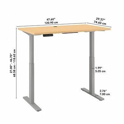 Have a healthy and productive day at the office with the Move 60 by Bush Business Furniture 48W x 30D Height Adjustable Standing Desk. Those who use sit to stand desks report improved attitudes, energy and comfort while getting more done, and the Move 60 provides an affordable solution. The electric adjustable height Desk smoothly lifts from a low of 27 inches to a high of 46.7 at the push of a button. Store your favorite heights with four programmable presets. The ergonomic Desk withstands years of everyday use. A durable thermally fused laminate finish resists scratches and stains, while the sturdy steel base creates a weight capacity of up to 200 pounds. This sit to stand Desk will have no problem holding all of your work materials. Backed by a 5 Year Warranty, the Height Adjustable Standing Desk meets ANSI/BIFMA quality test standards.