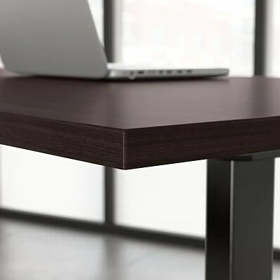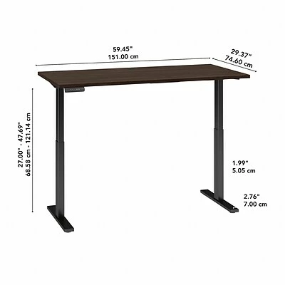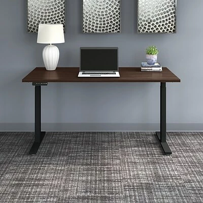 Have a healthy and productive day at the office with the Bush Business Furniture Move 60 electric height-adjustable standing desk. Those who use sit to stand desks report improved attitudes, energy, and comfort while getting more done, and the Bush Business Furniture Move 60 provides an affordable solution. The electric adjustable desk smoothly lifts from 27″ to 46.7″ at the push of a button. Store your favorite heights with four programmable presets, so you can use them as often as you like. The ergonomic desk withstands years of everyday use. A durable thermally fused laminate finish resists scratches and stains, while the sturdy steel base creates a weight capacity of up to 200 lbs. This sit-to-stand desk will have no problem holding all of your work materials. Backed by a 5-year warranty, the adjustable standing desk meets ANSI/BIFMA test standards.