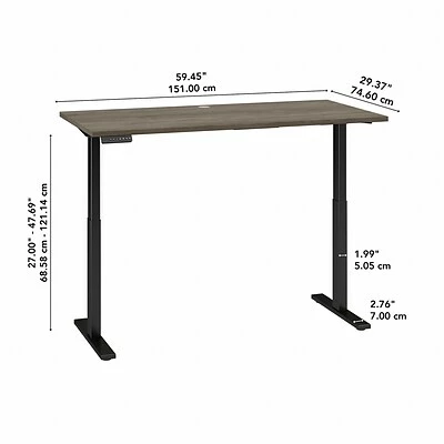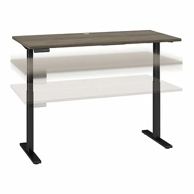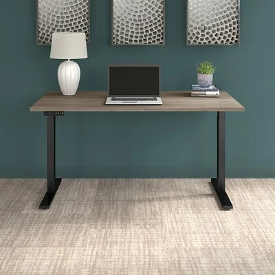 Have a healthy and productive day at the office with the Bush Business Furniture Move 60 electric height-adjustable standing desk. Those who use sit to stand desks report improved attitudes, energy, and comfort while getting more done, and the Bush Business Furniture Move 60 provides an affordable solution. The electric adjustable desk smoothly lifts from 27″ to 46.7″ at the push of a button. Store your favorite heights with four programmable presets, so you can use them as often as you like. The ergonomic desk withstands years of everyday use. A durable thermally fused laminate finish resists scratches and stains, while the sturdy steel base creates a weight capacity of up to 200 lbs. This sit-to-stand desk will have no problem holding all of your work materials. Backed by a 5-year warranty, the adjustable standing desk meets ANSI/BIFMA test standards.
