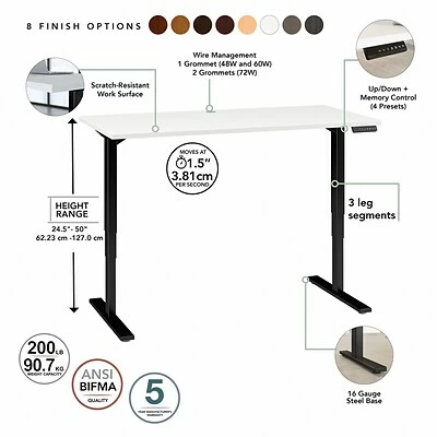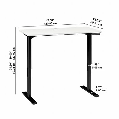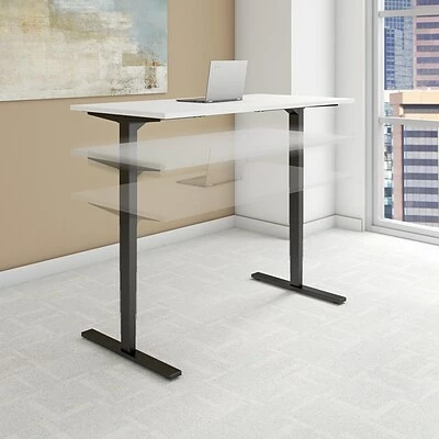 Experience maximum comfort and productivity with the Move 80 Series by Bush Business Furniture 48W x 24D Height Adjustable Standing Desk. Designed for today’s wide-ranging office environments, the flexible, healthy and ergonomic Desk fosters sitting and standing throughout the day without hindering workflow. Select and store four programmable presets to stay in motion in the office or at home. A quiet, soft-touch start and stop smoothly lifts the Height Adjustable Standing Desk from a low of 23 inches to a high of 49 – or anywhere in between. A durable thermally fused laminate work surface resists scratches and stains, while steel base legs and feet provide superb structural strength for a weight capacity of up to 200 lbs. Use the Desk as a standalone Table, Return or Bridge in your home, private business office or a larger collaborative workspace. Backed by a 5 Year Warranty.