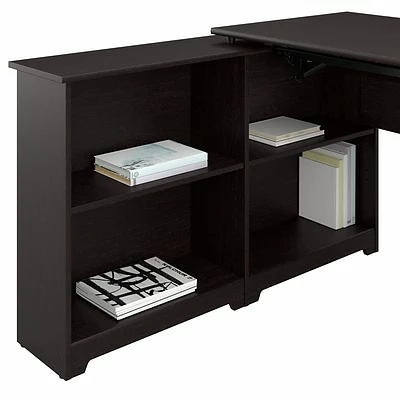 Save space, get organized and work comfortably in your home office with the Bush Furniture Cabot Sit to Stand Corner Bookshelf Desk. Smoothly lift and lock the ergonomic desktop to standing heights of 36, 39 or 42 inches from the floor, or easily return the desk to the seated position. The desktop holds up to 20 pounds when at standing height so you can bring materials with you when you need to stretch your legs. Spacious bookcase shelves adjust to fit items of varying sizes to keep everything you need within reach. The convenient Corner Desk design gives you the workspace and storage you need without taking up too much room. The Sit to Stand Corner Bookshelf Desk is backed by a Bush Furniture 1 Year Manufacturer’s Warranty.