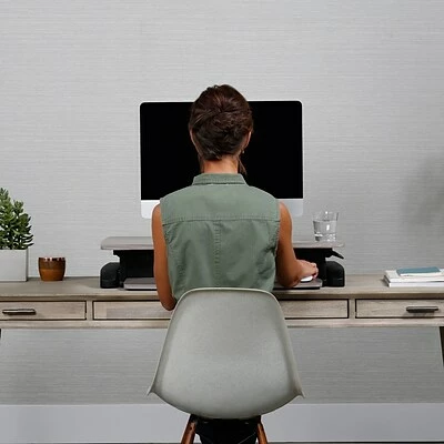 The WorkFit-Z Mini is equipped with the features you need most โ easy adjustment between sitting and standing, space for your smart devices and a grey finish that complements your office decor.