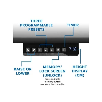 Set your desk at three preset heights, memory, and a timer function to help remind you when to sit and stand during the day
