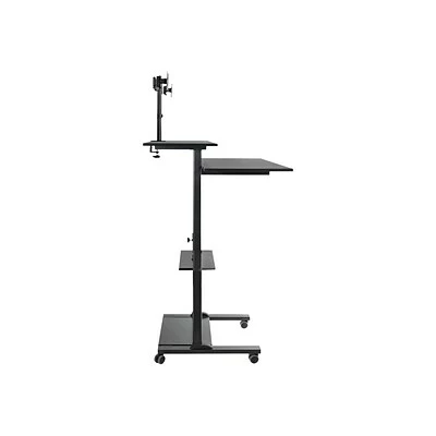 This sit-stand workstation will hold up your monitor, giving you extra space for your keyboard, laptop, mouse and more office supplies. Easily move the workstation from room to room and lock it into place with its lockable casters. The workstation has a weight capacity of 132 lbs and offers 4 shelves for your work items. Perfect for homes, businesses, offices, schools and more!