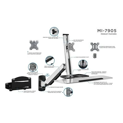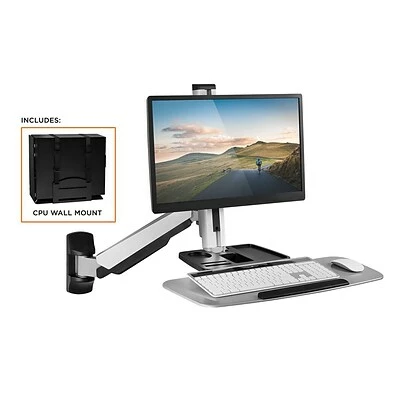 The Mount-It! MI-7905 is a full motion, wall-mounted workstation designed to give you the option to sit or stand in seconds. The heavy-duty spring arm uses counter-balance technology so you only need to set it once to the optimal tension, and then you will be able to effortlessly move your sit-stand up to 19.9″ for the desired height. The single monitor VESA bracket works with monitors up to 27″ and can be tilted for the optimal viewing angle. The wide keyboard is 26.2″ L x 10.2″ D and it conveniently folds away when you don’t need it. The MI-7905 also features an organizer tray, built-in cable management ducts, and a bonus wall-mountable, CPU holder for a complete standing computer station.