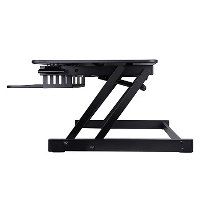 Quick, easy, and stable height adjustment design: Sturdy metal frame with easy-grip side handle and gas piston assist, can raise and lower up to 35 pounds with continuous height adjustment from 5″ up to 17″ above desktop to optimize the ergonomic work position for people of most heights.