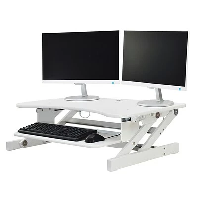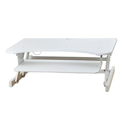 The Deluxe Adjustable Desk Riser offers a unique retractable keyboard tray technology offers ergonomic comfort without the hassle of having to manually reset your riser.
