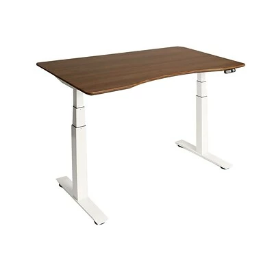Discover the benefits of getting active during your day with the AIRLIFT™ S3 Electric Height-Adjustable Standing Desk. Upgrade with a desk that encourages a healthy lifestyle and by reducing unhealthy sedentary behavior. With a press of the AIRLIFT™ buttons, dual electric motors smoothly and quietly adjust the height from a minimum of 25.6 inches high to a maximum height of 51.4 inches. Solid steel construction throughout gives the desk the stability and durability for a long life with regular use. Save up to four memory settings and adjust to the perfect height throughout the day with the digital controller. An LCD display lets you know how high the desk is as it rises and descends. The top measures 54 inches wide, 30 inches deep and features rounded corners. The user-focused design features an ergonomic curve, allowing you to get closer to the desk while sitting or standing. On the bottom, the beveled edges of the desk slope inward and give the top a slim look while making it more comfortable to use when lowered. Desk base is finished in white, with the top finished in walnut thermoplastic 3-D laminate. Assembly is easy and can be done in minutes with the included tools. Use it as a home or office desk replacement, or as an instant upgrade to office spaces for large and small businesses.