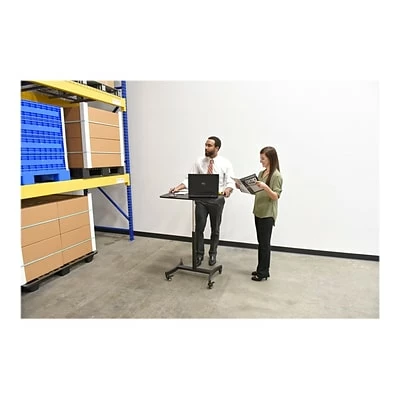 Alternate between sitting and standing positions with this adjustable desk. The heavy-duty gas strut supports heights between 29 and 44 inches, and sturdy steel construction withstands everyday use. Caster wheels on this Victor Technology mobile desk transform your workspace into a convenient mobile cart.