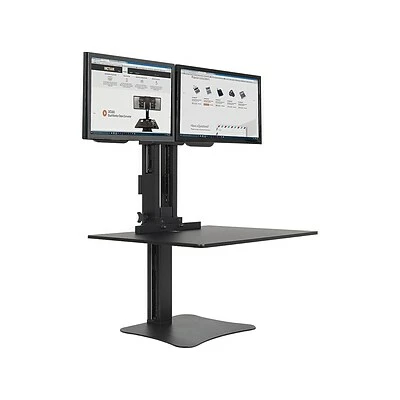 Work in your preferred posture and multitask more easily with this desk converter, which can hold up to two 24-inch monitors and adjusts from sitting to standing height with the twist of a knob. This Victor Technology High Rise desk converter includes a 23 x 28-inch work surface to keep a keyboard, mouse, notepad or phone easily accessible in either position.