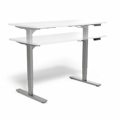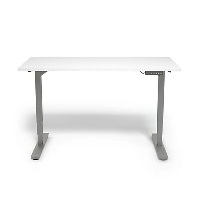 Complete office tasks comfortably with this white adjustable desk. The rectangle tabletop provides accommodation for your laptop and writing materials, while the included buttons let you adjust the height. Featuring a white design, this sit-stand desk brings a clean look to your office space. The control box and two motors allow for effortless operation, and the included side brackets easily fit the predrilled holes for added support. This Essentials sit-stand electric height-adjustable desk is easy to assemble and has a metal cable tray for a neat space.