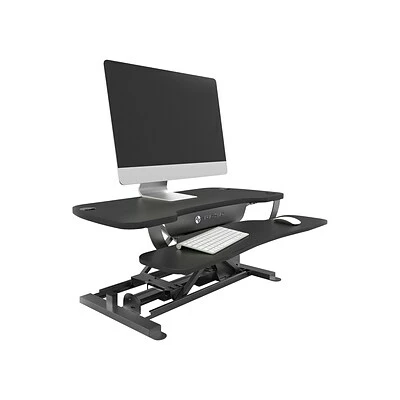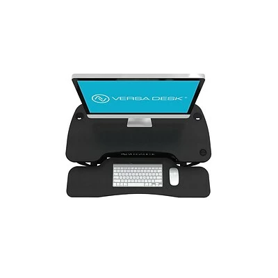 Focus on your health and turn your regular work surface into a standing desk by using this electric sit-to-stand desktop converter. The push-button design raises and lowers the desk quietly as needed, and it holds up to 80 pounds, which accommodates most computers or standard office machines. This Versa Tables VersaDesk PowerPro sit-stand desktop has integrated grommets for attachments.