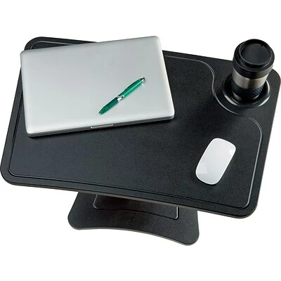 The High Rise Height Adjustable Laptop Stand with Storage Cup creates a functional, standing workspace for your laptop or tablet. With a surface that is 23.75″ wide by 15.25″ deep, a standard laptop can be accommodated with space allotted for a wireless m